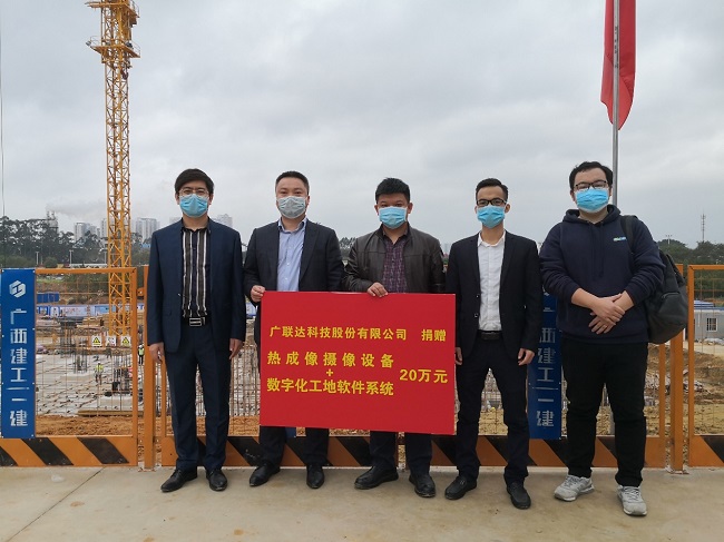 在廣西壯族自治區(qū)人民醫(yī)院邕武醫(yī)院平戰(zhàn)結(jié)合病房樓項(xiàng)目臨時(shí)黨支部揭牌儀式上,由廣聯(lián)達(dá)數(shù)字施工BG廣西公司總經(jīng)理伍君先生代表廣聯(lián)達(dá)公司,向項(xiàng)目部捐贈(zèng)了價(jià)值20萬(wàn)元的熱成像攝像設(shè)備和數(shù)字化工地軟件系統(tǒng),為疫情期間項(xiàng)目復(fù)工提供數(shù)字化管理與防疫保障,為堅(jiān)守在抗擊疫情第一線的建設(shè)人員送去健康守護(hù)與關(guān)愛,與他們共同堅(jiān)守“抗疫”戰(zhàn)爭(zhēng)一線。